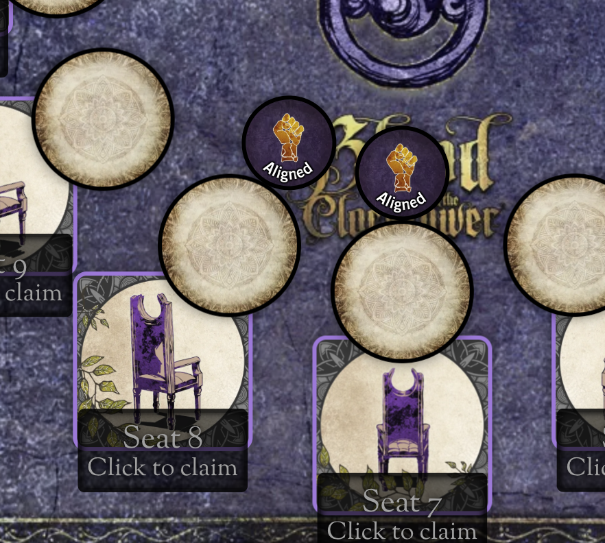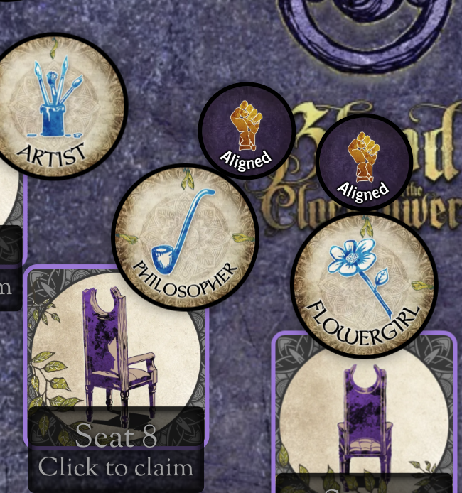 El Revolucionario controla que los jugadores marcados con los recordatorios de Aligned sean del mismo alineamiento al distribuir los personajes a los jugadores.