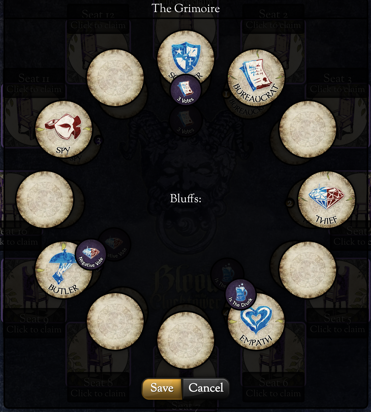 El Ladrón y el Burócrata modifican los votos de quien vota. Esto se hace fácilmente marcand con el recordatorio al jugador, porque la aplicación ya se hace cargo de todo.
