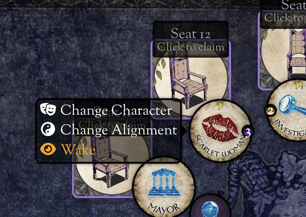 Siempre puedes matar a cualquier jugador poniendo el raton sobre la parte superior de su ficha, para que aparezca el sudario. Si le das, le marcarás como muerto. Pero hay una diferencia entre hacerlo durante el día, que es inmediato y todos los jugadores lo ven, o la noche, donde te aparecerá temporalmente y nadie lo ve hasta que lo reveles durante el día (dándole otra vez; el ojo te indica que sólo lo ves tú).