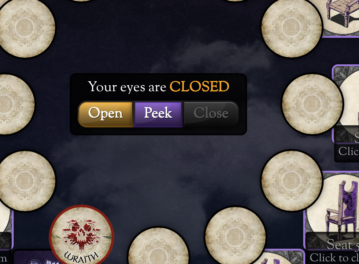 Por la noche, el Espectro puede despertarse. Le aparecerá las opción de abrir los ojos por completo, cuando recibirá toda la información que mandes o recibas de los personajes, pero con el riesgo de que le descubran, o peek, que es abrir un poquito los ojos, sólo para ver que alguien recibe información pero no qué información recibe.