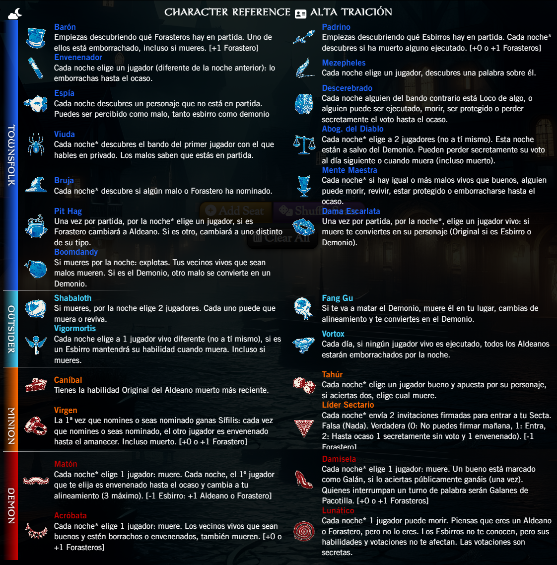 Nuestros queridos y clásicos personajes se han cansado de luchar siempre para el mismo bando. Así que han decidido traicionar a los suyos y ponerse al servicio de los enemigos. Para ello han tenido que readaptar sus habilidades lo mejor que han podido. https://www.bloodstar.xyz/p/solrax/Traicion/almanac.html