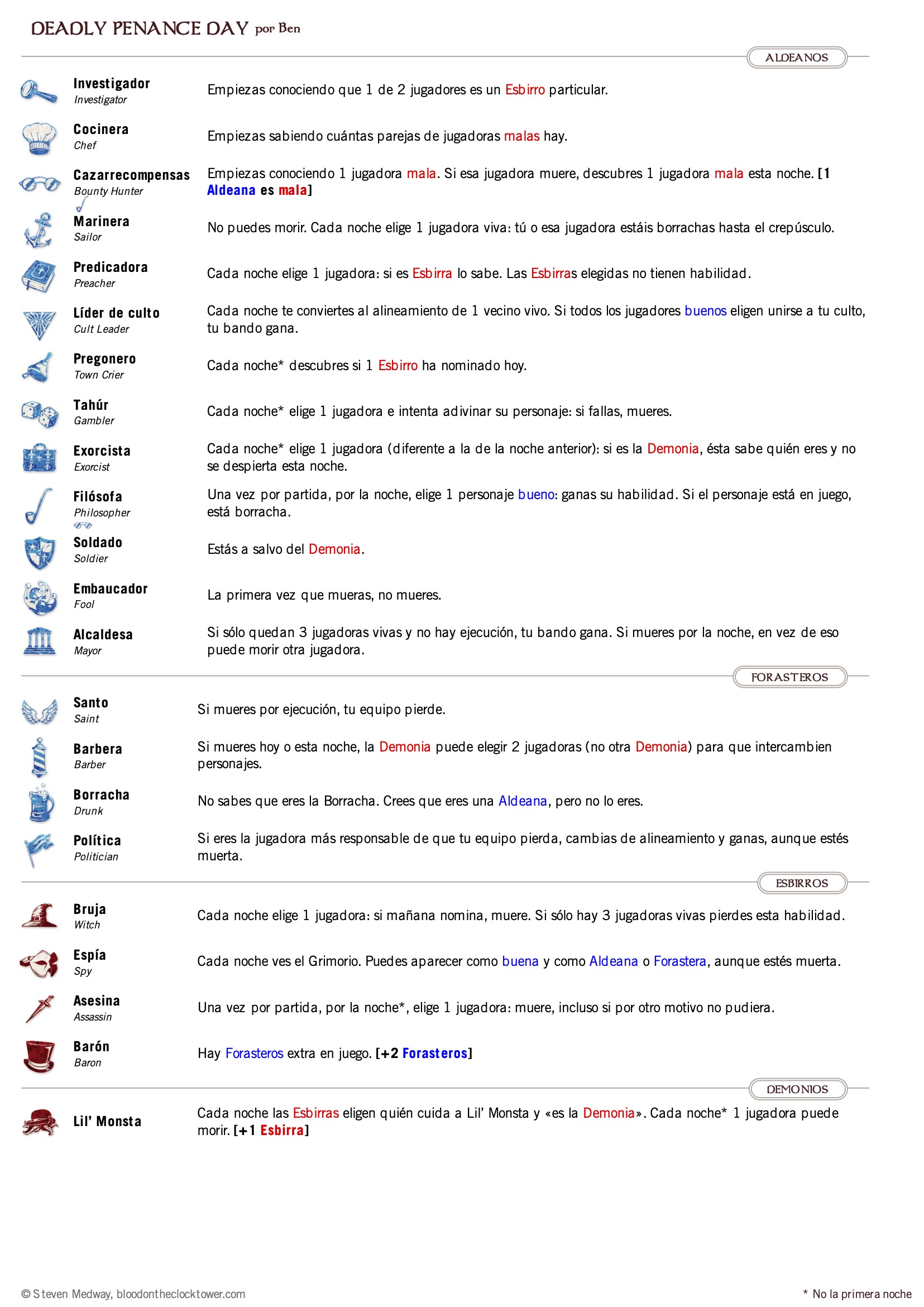 Personajes clave: Preacher, Assassin, Town Crier