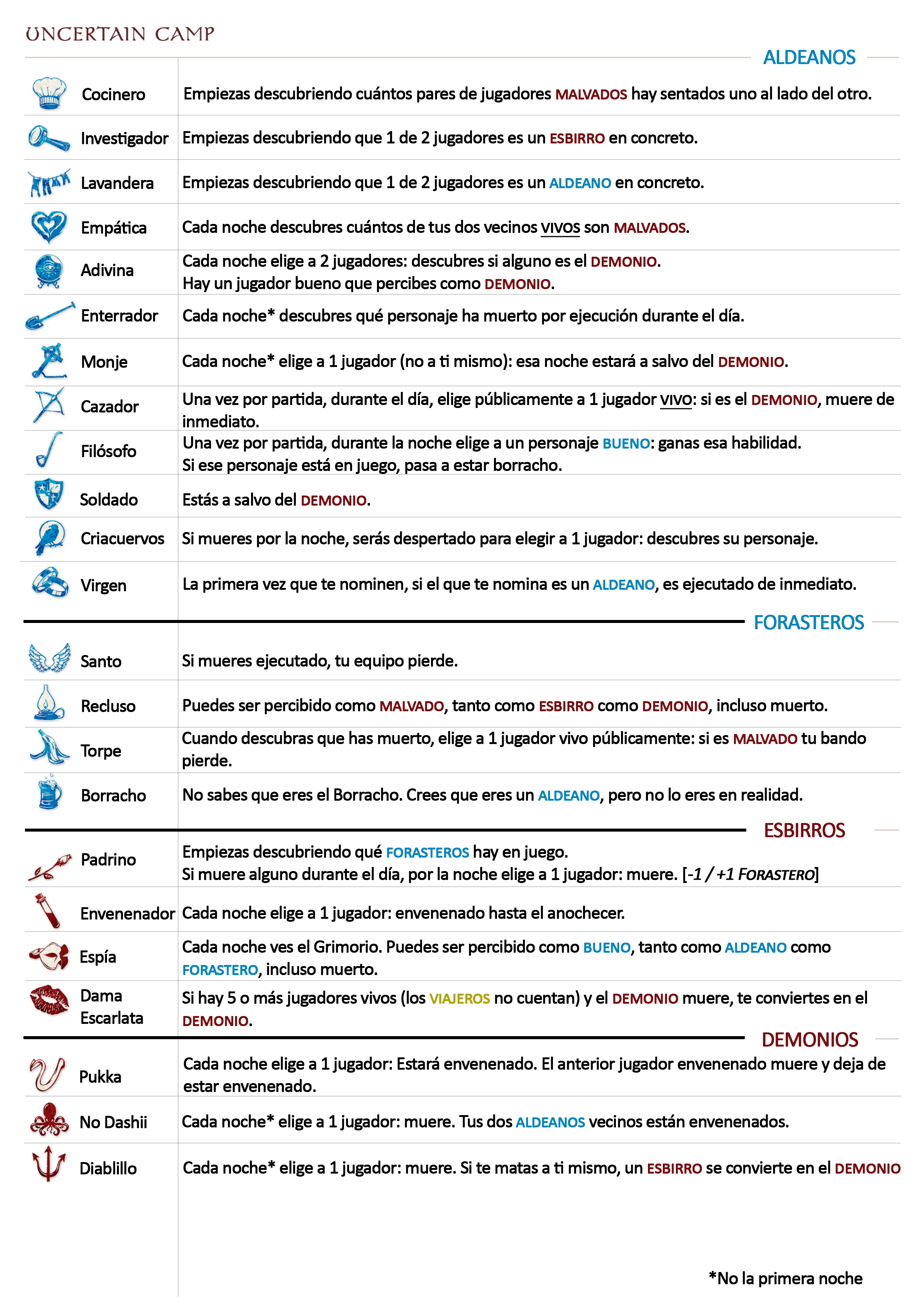 Variante que mezcla la adaptación de Trouble Brewing creada para el Campamento Barton de 2024 y Uncertain Death. Un guión que utilizo para dar un pequeño paso después de Trouble Brewing. No introduce ninguna mecánica diferente a Trouble Brewing pero consigue que los jugadores manejen mejor forasteros, esbirros y demonios.